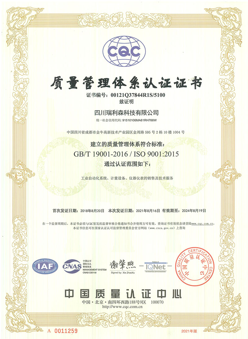 質(zhì)量管理體系認(rèn)證證書(shū)